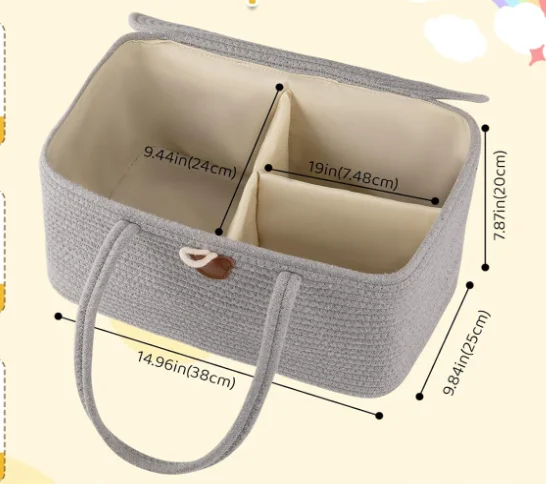 Nursery Storage Bin Diapers Wipes Organizer Cotton Rope Changing Table Caddy Basket
